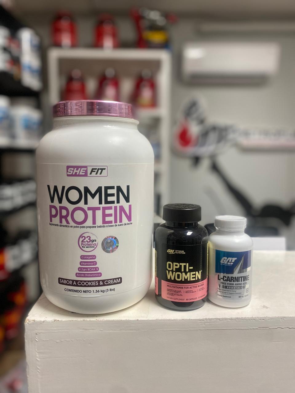 COMBO ( WOMEN PROTEIN 3 LBS, OPTI WOMEN 60 CAPS, L-CARNITINA 60 CAPS )